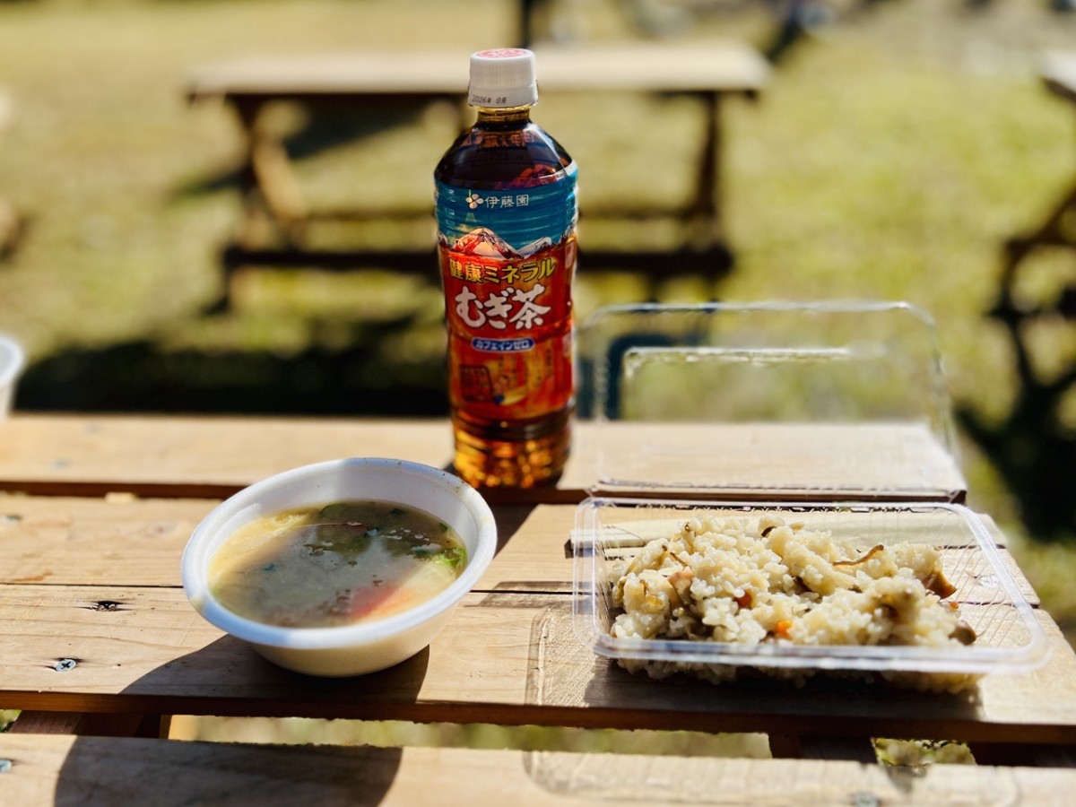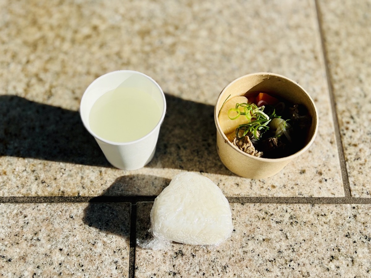 五つ目のエイドでは牛すじ煮込みと新米のおにぎり