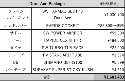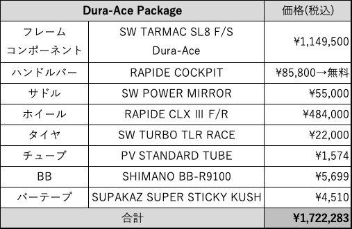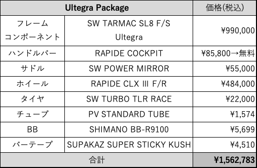 S-WORKS TARMAC SL8のビルドパッケージはどれくらいお得?完成車と金額を比較してみました
