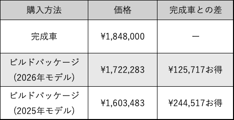 完成車で購入した時と比べて金額にどれくらいの差が出るのか比べてみます!