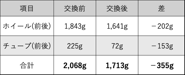 ホイール重量の比較まとめ