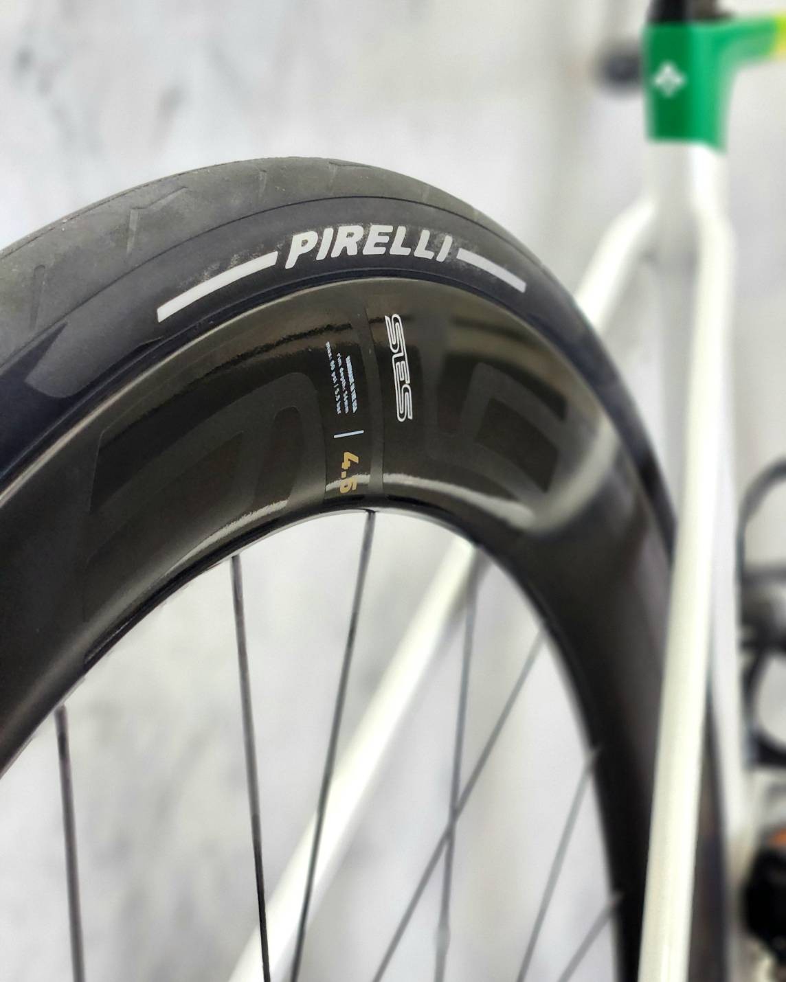 タイヤはPIRELLIの「P-ZERO RACE SPEEDCORE」、サイズは30Cを選択してエアロ性能と快適さを追求しています。