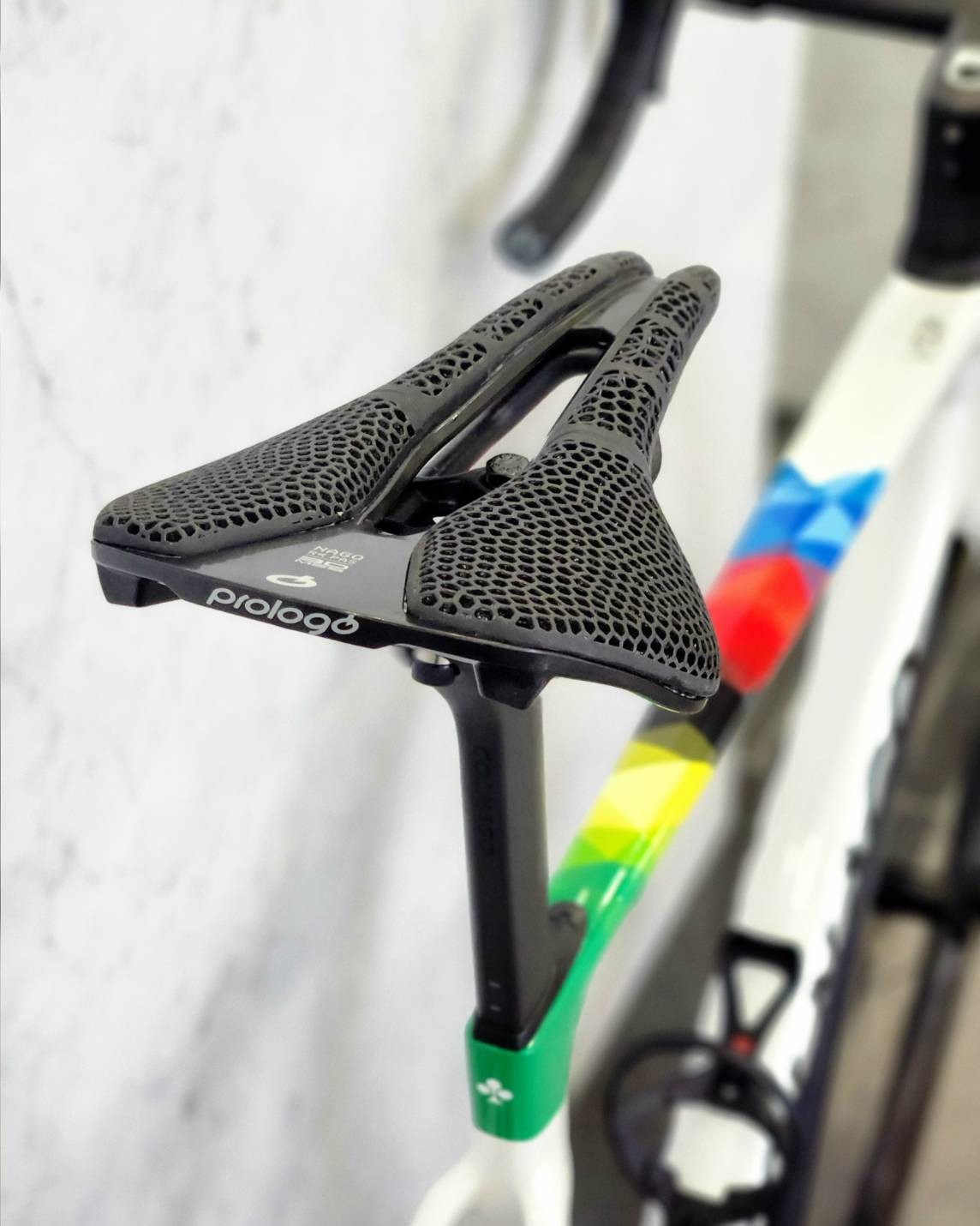 サドルはPROLOGOの「NAGO R4 PAS 3DMSS NACK」、3Dプリントモデルで快適さと軽量性を両立。