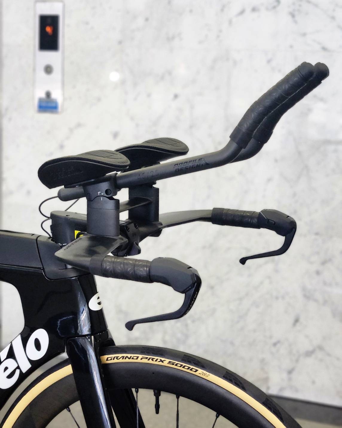 ホイールやボトルケージはこれまでロードバイクで使用していたものをTTバイクへ移設。